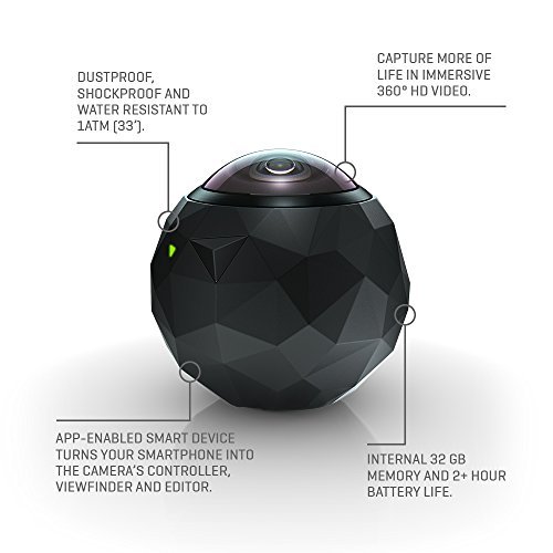 360fly HD - The original 360-degree video leader. With one camera, one lens and no seaming, the 360fly HD captures your entire life in immersive, interactive video ? video you can edit, add effects to and share directly from your iPhone and Android smartphone. Includes camera, mounts, and everything you need to start recording your memories in their fullest. Compatible with most iPhone / iPad devices running iOS 9 or later and Android devices running version 4.4 or later including the Samsung S6, Samsung Galaxy Note and LG Nexus 5. Accessories for purchase: - 360fly VR - Smartphone Compatible Virtual Reality Headset - 360fly HD Suction Mount - High-Speed Suction Mount - 360fly HD Vented Helmet Mount - Fits Most Vented Helmets - 360fly HD Handlebar Mount - Fits Round and Square Bars - 360fly ?-20 Tripod Grip - Rubber Injected Grip Handle - 360fly QuickTwist to ?-20 Adapter - Versatile Connection