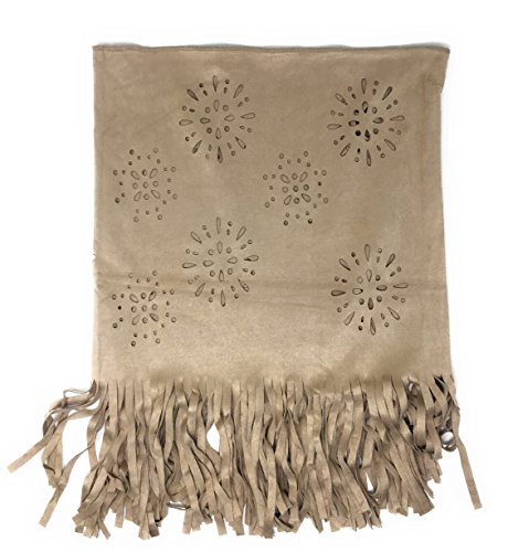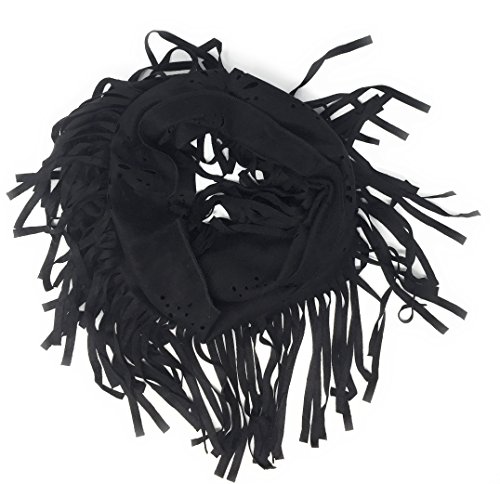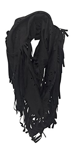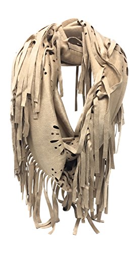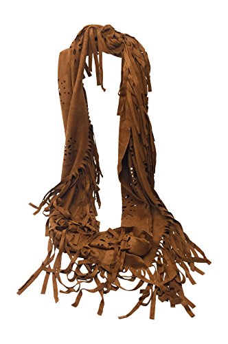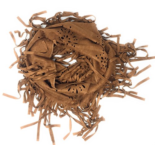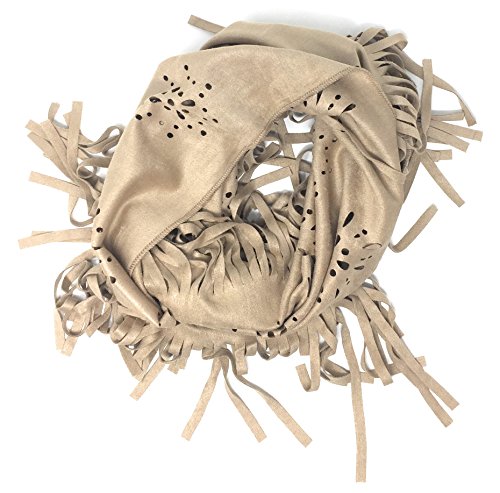 Binding : Apparel Product Description Have fun rocking a cool fashion trend for this autumn and winter, with this stylish faux suede infinity laser cut scarf. With a beautiful laser cut design, and a funky western flair, you'll be making an awesome fashion statement as you layer up in this hip accessory. You can even wear it as an alternative to a necklace! With its faux suede feel, it's the perfect fall accessory, but layer it up more for winter, or layer it down for spring! With its versatile design and undeniably adorable look, this scarf is a prime example of fashion meeting with functionality. Whether it's a suede vest with fringe or another cowboy shirt, you can wear this fashion statement with pride and style. Never feel uncomfortable in this stretchy infinity version of the popular laser cut fringe scarf. 0