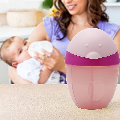 BESTGLE BABY FORMULA DISPENSER CONTAINER WITH 3 COMPARTMENT CUTE PENGUIN INFANT MILK POWDER DISPENSER NO-SPILL STORAGE SNACK POT (PINK)