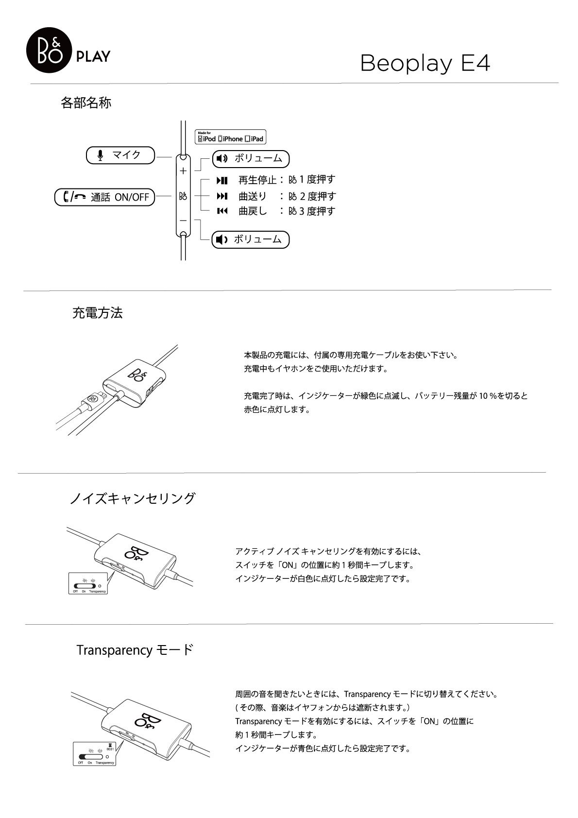 ■ Hands-free conversation support: Beoplay E4 has built-in microphone and handsfree calling is supported.