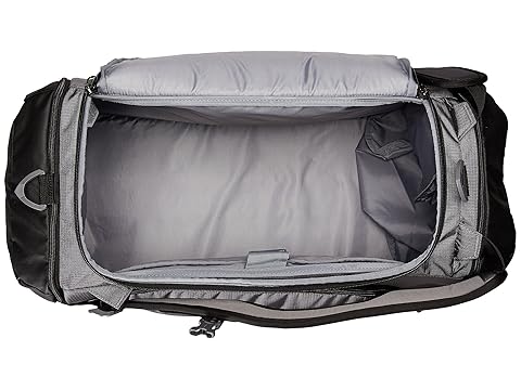 SKU: #8922702 Under Armour® has the perfect duffel for all your dynamic adventures. Converts to a backpack. UA Storm gear uses a DWR finish to repel water without sacrificing breathability. Adjustable, padded HeatGear® shoulder straps with integrated handle and sternum strap. Two large vented end pockets and one expandable pocket for laundry and shoes. Water-resistant valuables pocket is lined with soft microfiber to store electronics safely. Top grab handle. Water bottle side pocket for quick stashing and grabbing. 58% polyester, 42% nylon. Imported. This product may have a manufacturer#x27;s warranty. Please visit the manufacturer#x27;s website or contact us at warranty@support.zappos.com for full manufacturer warranty details. Measurements: Bottom Width: 21 in Middle Width: 18 1?2 in Top Width: 17 1?2 in Depth: 10 in Height: 10 1?2 in Strap Length: 23 in Strap Drop: 12 in Accessory Strap Length: 48 in Accessory Strap Drop: 22 in Weight: 1 lb 13 oz |
