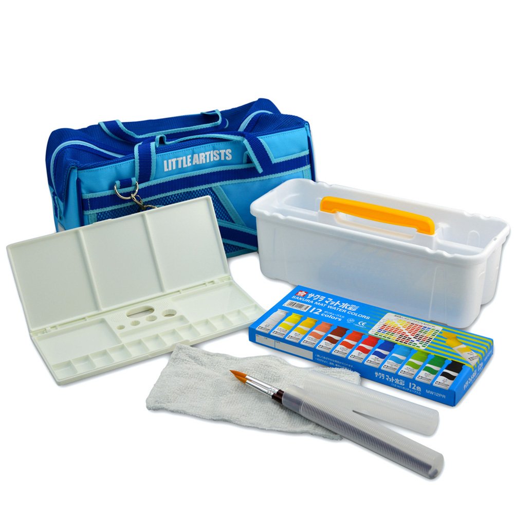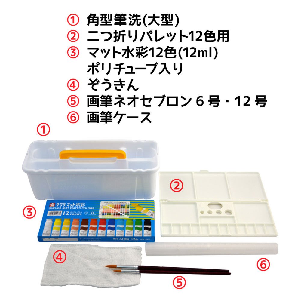 Mat watercolor 12 colors (12 ml) Polytube paint, paintbrush, painting brush case, pallet, brushwork, clothespin