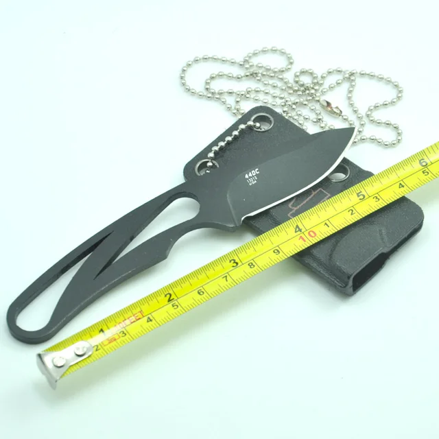 상품 내용 사냥 고정 칼 440c 56 HRC 전체 에지 블레이드 검은 색 스틸 핸들 전술적 캠핑 도구