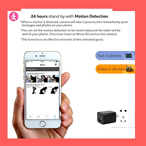 - ✔VERSATILE, MORE THAN A SPY CAMERA - Can be used as a regular charger for cell phones and other electronic devices. Use it to charge yours iPhone , Android and other cell phones that can be charged by connecting to USB port. When you connect it to your cell phone just charges it so if another person connects it to his/her cell phone nothing happens just charging it .Nobody realizes it is spy camera.