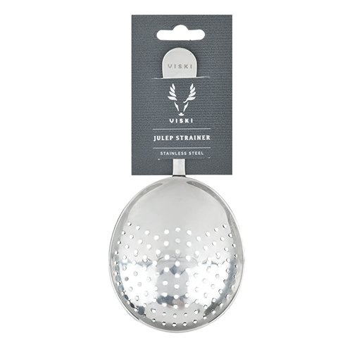 Studio : True Brands Publisher : True Brands Binding : Kitchen Product Description A bar essential as iconic as its eponymous drink, our professional-grade julep strainer is intrinsic to any finished bar set. Cast in gleaming stainless steel from a classic design, the tool features uniform perforation across a bowl perfectly sized to fit standard and large mixing glasses. 0