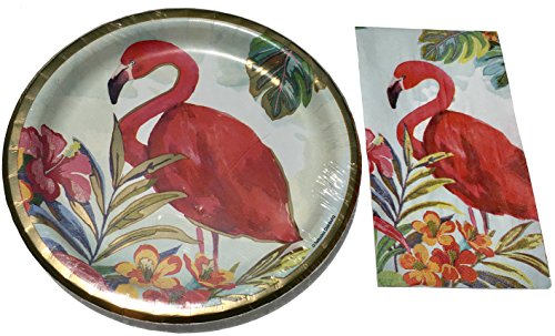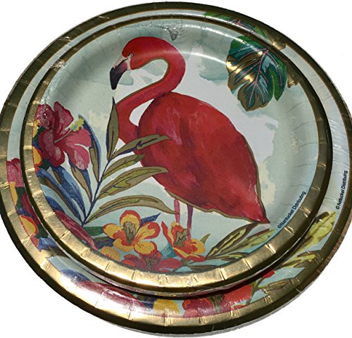 CTS 8-3/4 in Round Luncheon Plates ~ Gold Foil Pink Flamingo 8 ct