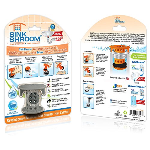 SinkShroom The Revolutionary Sink Drain Protector Hair Catcher/Strainer/Snare, Gray