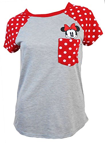 Disney Ladies Pocket Size Minnie Mouse Tee Heathered Red Small