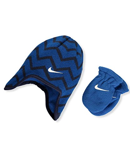 Studio : Nike Publisher : Nike Binding : Apparel Product Description 2-piece beanie and mittens set from Nike. Nike 2-piece beanie and mittens set Acrylic knit earflap beanie with fleece lining (100% acrylic; lining 100% polyester) Fleece thumbless mitts (100% polyester) Hand wash cold Imported 0