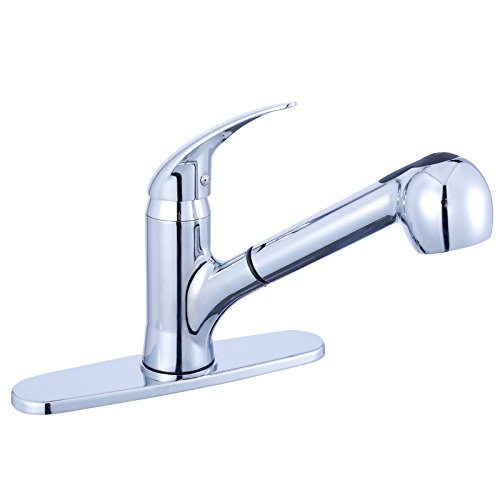 FREUER Utilita Collection: Pull Out Spray Kitchen Sink Faucet with Deck Plate, Polished Chrome