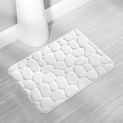 mDesign Small Pebble Accent Rug Memory Foam Non-Slip Bath Mat for Bathroom Showers - 24" x 17", White