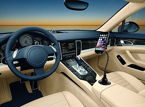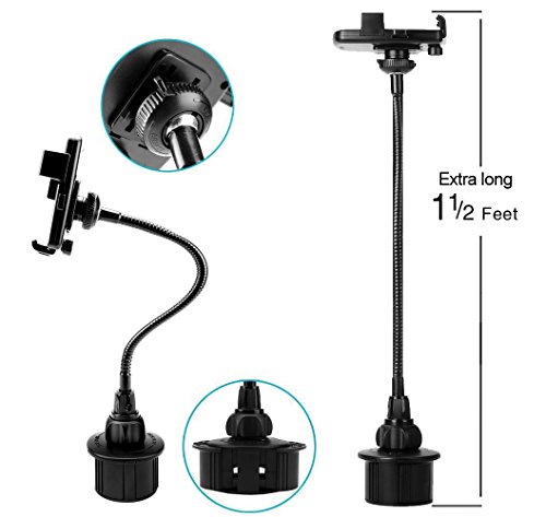 G-Cord® Adjustable Cup Holder Mount for iPhones, iPods, Smartphones, MP3 Players, GPS Systems Measured maximum width can extend up to 4 inches - large enough to accommodate most phones including larger ones like the Galaxy Note 4 or the iPhone 6 Plus.