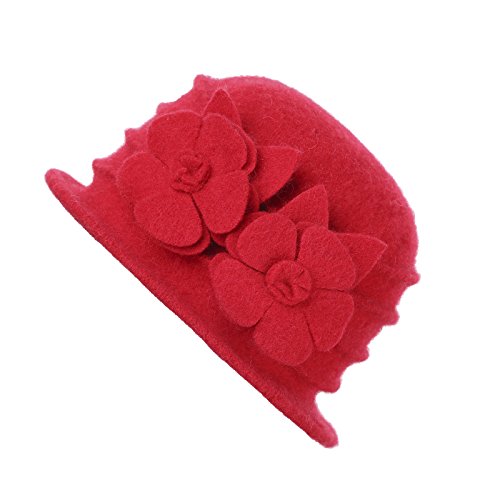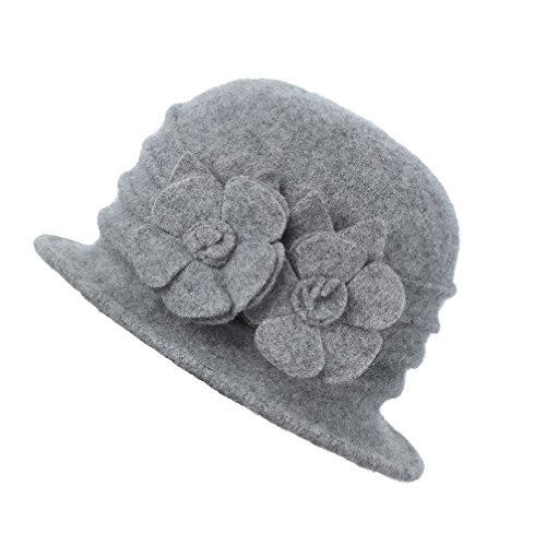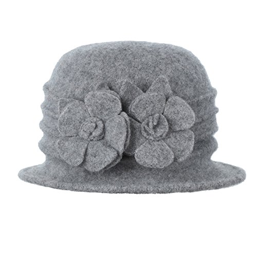 (Prefe)/Accessories/Hats/DIRECT FROM USA/Prefe Women 100% Wool Felt Round Top Cloche Hat Fedoras Trilby with Flower