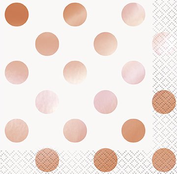 16- Rose Gold Foil Stamped Polka Dot Cocktail Napkins 5" (NOTE: foil stamp polka dots on one side only, the other side has coordinating light pink dots
