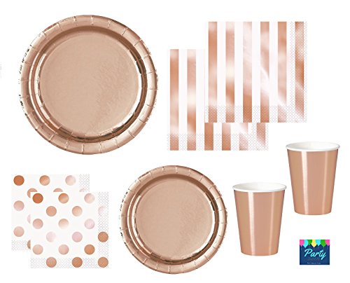Rose Gold Party Supplies Elegant & Shiny Tableware set for 16 guests includes