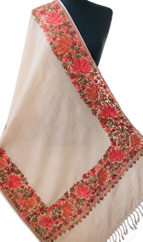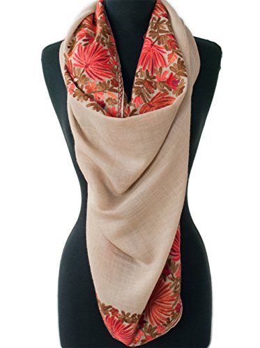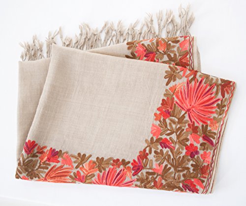 (Heritage Trading)/Accessories/Scarves/DIRECT FROM USA/Beige Floral Embroidered Shawl Wool Wrap 84” x 29” Shades of Red Brown