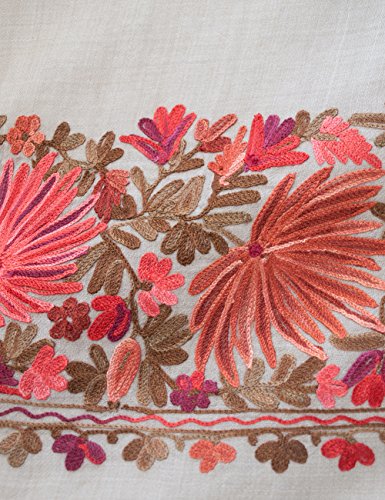 Product Description Wool Shawl Embroidered in the Kashmiri Style from Heritage Trading Company Chain stitch embroidery has long been associated with the Indian region of Kashmir. The artisan who stitched the design onto this shawl was working in that historic tradition. 0