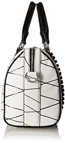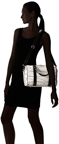 Fashionable satchel features stud detail on front side and comes with adjustable shoulder strap that is removable
