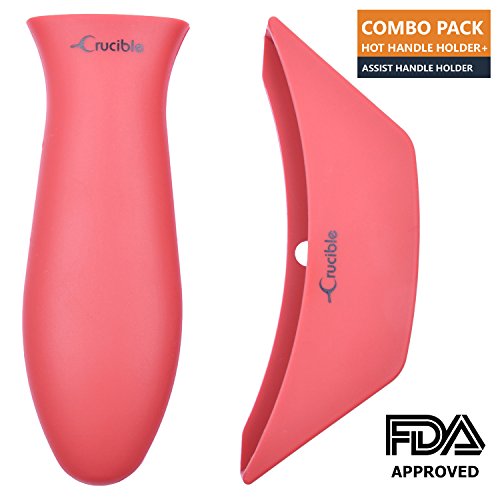 Silicone Hot Handle Holder + Assist Holder , Potholder ( 2-Pack Mix Red ) for Cast Iron Skillets , Pans , Frying Pans & Griddles , Metal and Aluminum Cookware Handles - Sleeve Grip , Handle Cover