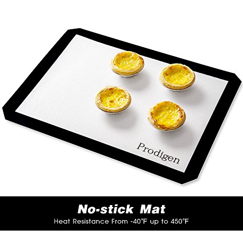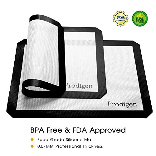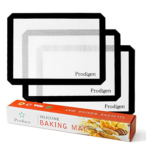 Prodigen 3 Pieces Premium Silicone Baking Mat Non Stick Silicone Mats Reusable Kitchen Cooking Oven Baking Mats for Macaron/Pastry/Cookie/Bun/Bread Making(11x16-INCH,3-Piece)