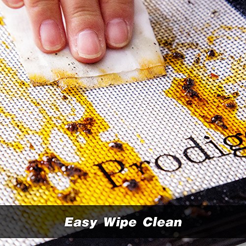 NON-STICK & EASY TO CLEAN: The food won’t be sticked on the mats to make it hard to clean.It’s made of easy clean material. The baking mat can be wiped with damp clothYou can wash it in your dishwasher.