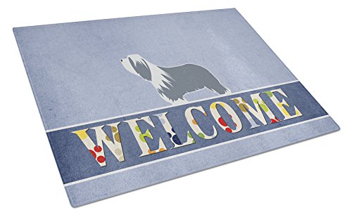 Caroline's Treasures Bearded Collie Welcome Glass Cutting Board Large, Multicolor