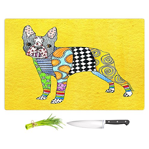 DiaNoche Designs CB-MarleyUngaroBostonTerrierYellow2 Artist Marley Ungaro-Boston Terrier Yellow Cutting Boards from, Large 15" x 11"