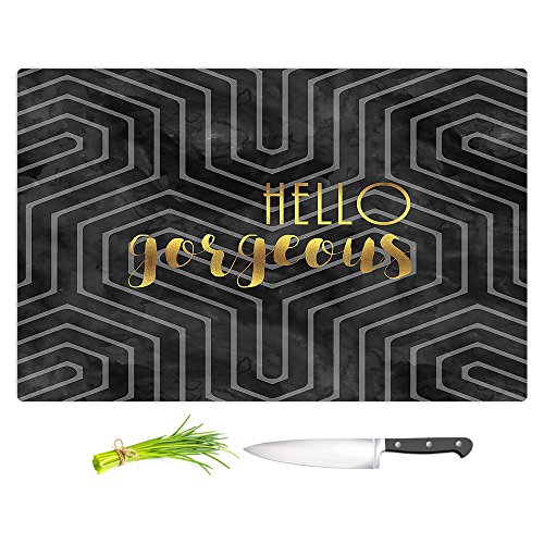 DiaNoche Designs CB-ZaraMartinaHelloGorgGeoPattBlaGo2 Artist Zara Martina-Hello Gorgeous Geo Pattern Black Gold Cutting Boards from, Large 15" x 11"