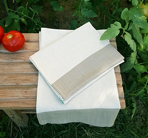 4 Pack, %100 Linen, Handmade Absorbent Dish Cloths (18 x 28 inches), Vintage Striped, Perfect for Kitchen Towels, Napkins, Tea Towels, Hand Towels, Bread Towels, Sack Towels (Light Brown)