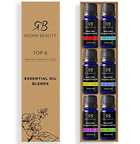 -. Title : Radha Essential Oil Blends set - 100% Pure Therapeutic Grade oils kit for Aromatherapy Sea of Thieves, Stress Free, Rest & Relax, Breathe Easy, Pure Healing, Happy Citrus, great Gift - 6/10 ml