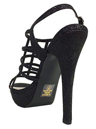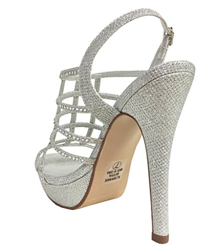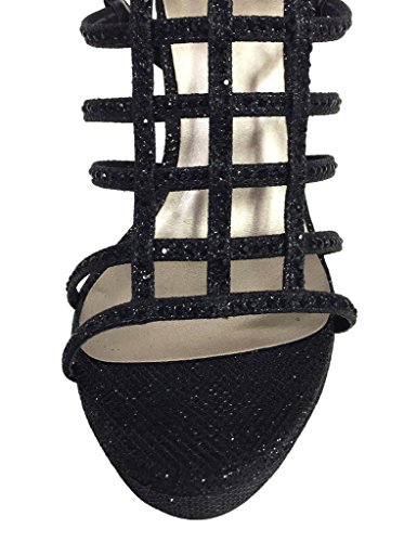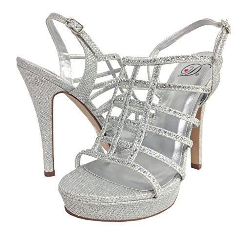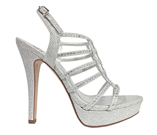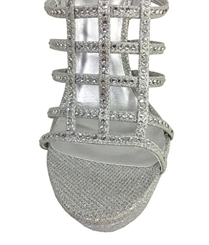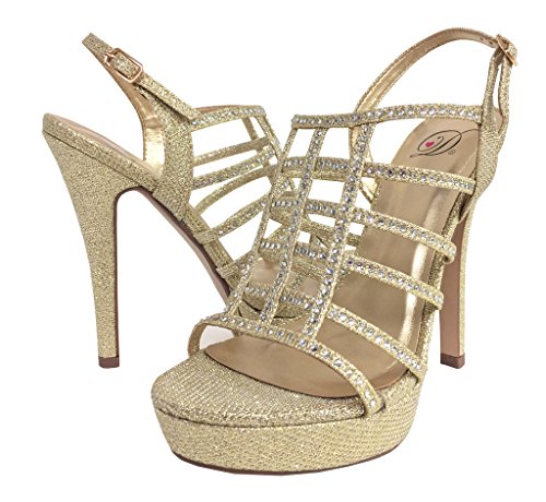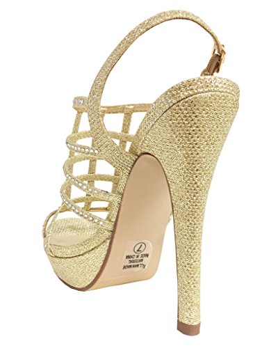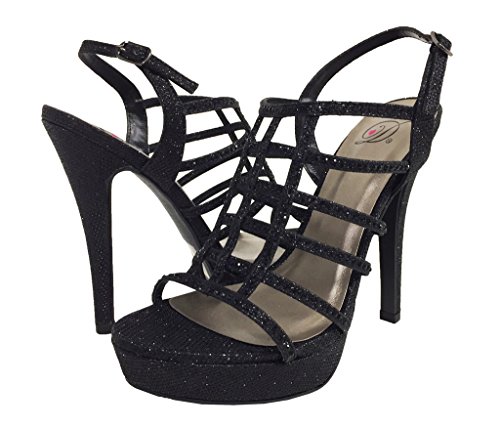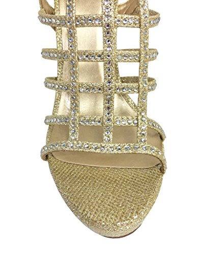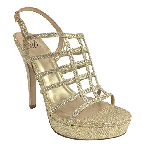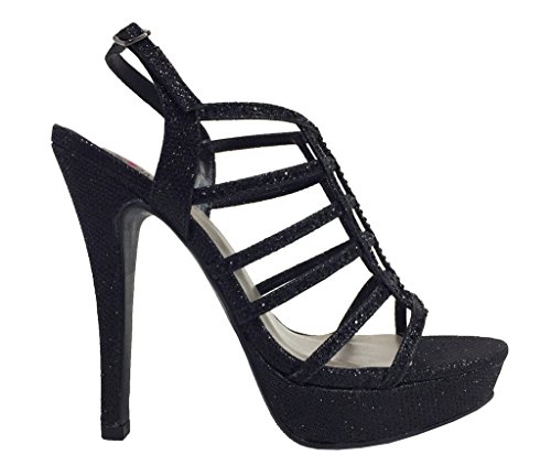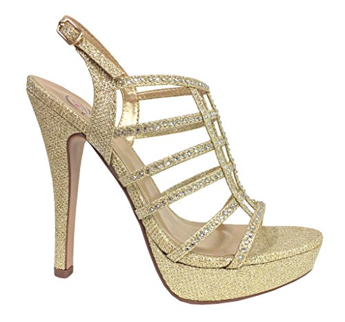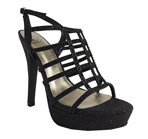 FIELD! Women's Dazzling Rhinestone Embellished Cage High Heel Stiletto Platform Sandals