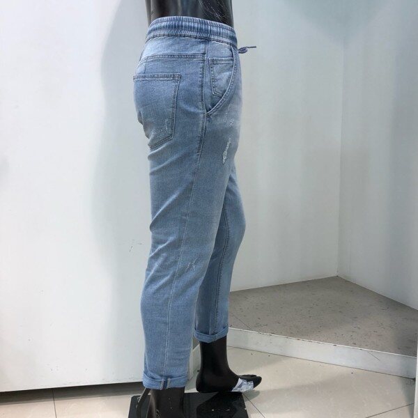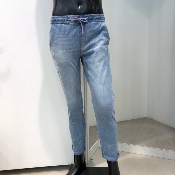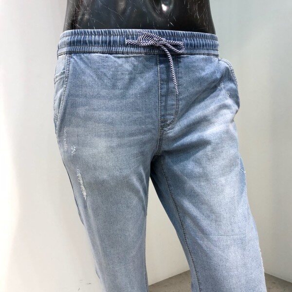 18 S/S 여름 신상.남자 저온스 L톤 구제 풀밴딩 스트링 크롭 테이퍼드치노핏 데님 팬츠 입니다. 라이트한 컬러감에 스톤워싱과 캣브러쉬로 시원한 워싱감을 살린 저온스진 입니다. 전체밴딩에 스트링을 포인트로 주어 편하고 캐주얼하게 연출이 가능한 디자인 입니다.