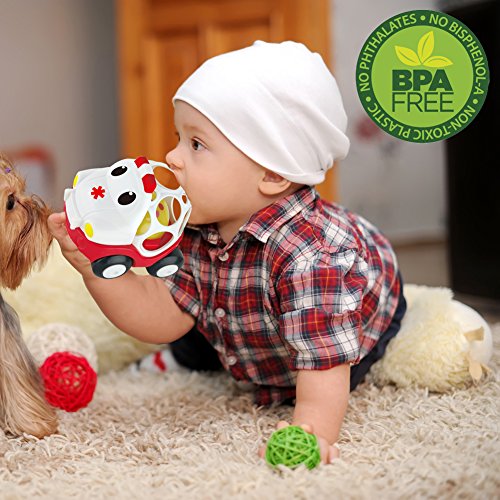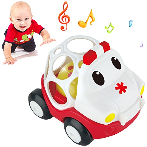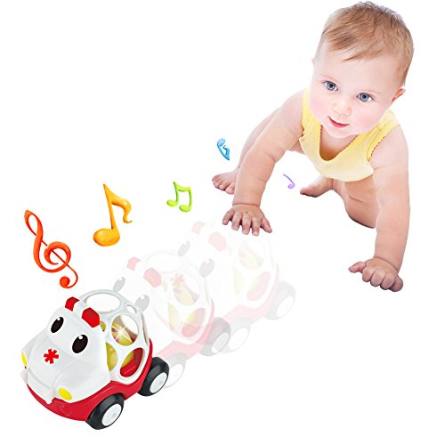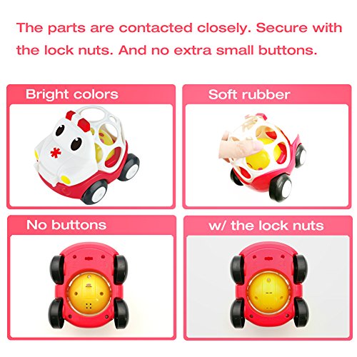 These cars are perfect for even the youngest of cartoon car fans. Cartoon vehicles feature those signature geometric holes that are more fun to pick up and easy for even the youngest, most inexperienced fingers to grasp. These easy-to-grip cars are rugged and virtually indestructible. When shaking, straining, rattling or rolling the ball. The amazing laughter & music rang out and light will attract your baby to reach out for touching or crewling! Great for on the go and inspiring more imaginative play times. These brightly colored cars are so easy to pick up, they're the ideal choice for baby's very first car.