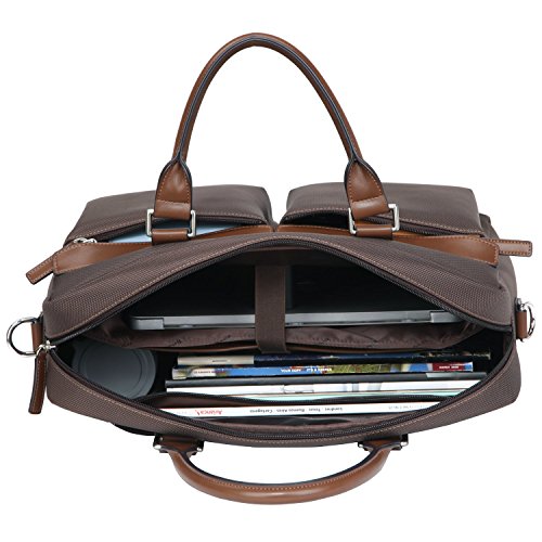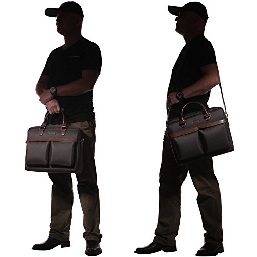-. Brand : Banuce -. ClothingSize : Onesize -. Color : Dark Brown -. Department : mens -. Feature : Waterproof oxford fabric with PU leather / Top zip clousre, Top handle with 4.5 inch drop / Detachable and adjustable shoulder strap with pad / Dimension: 16L *5.25D *12.75H inch. / Exterior front with 2 pockets. Interior Padded laptop sleeve fits up to 15.6 inch laptop, Main section fits up to 16 inch laptop. -. Model : RTXCXBM134-DBN -. ProductGroup : Apparel -. ProductTypeName : LAGE -. Size : Onesize -. Title : Banuce Waterproof Fabric PU Leather 15.6 Laptop Briefcase Front Pocket Messenger Bag