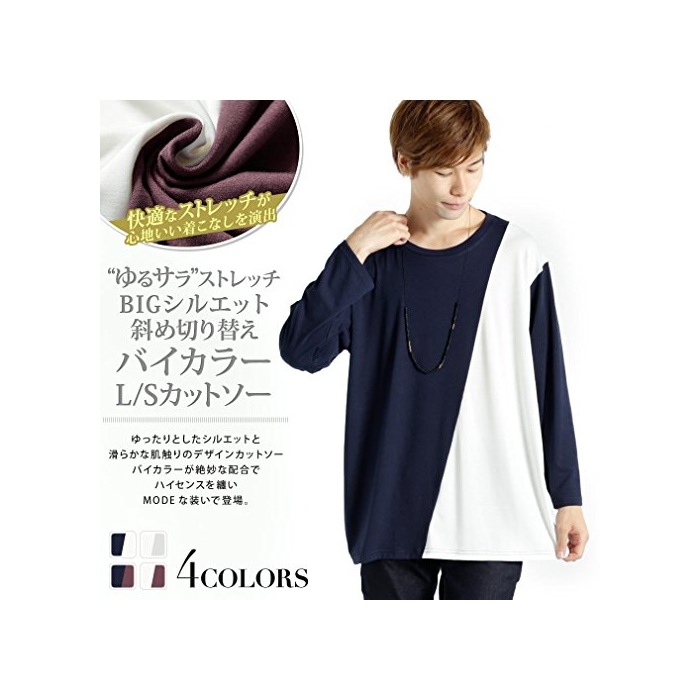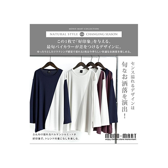 원본상품명: (モノマト) MONO-MART 7分袖 斜め 切り返し バイカラ ドルマン カットソ