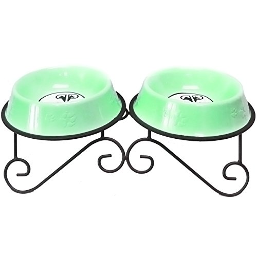-. Title : Platinum Pets Platinum Pets 3-Cup Scroll Double Diner with Embossed Bowls, Winter Mint