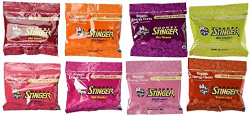 -. Feature : Honey Stinger Organic Energy Chews come in a variety of declicious flavors. / Source of energy - Honey Stinger Chews are sweetened with organic honey and tapioca syrup and include naturally occurring fiber and protein. / Great for activities: biking, running, wrestling, ski, climbing, lifting, surfing, or chopping wood all day :-) / Certified organic, gluten free and fortified with 100% RDA vitamin C / Honey Stinger makes nutritious and great tasting honey-based foods including energy bars, protein bars, energy gels, organic waffles, organic chews, kids specific snacks and their very own Organic Wildflower Honey with many fruit flavors