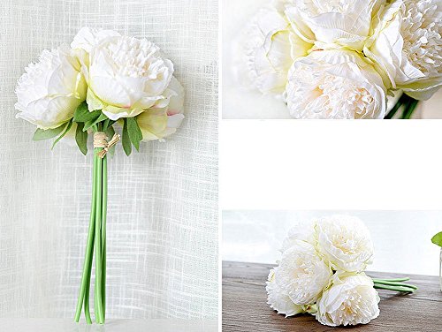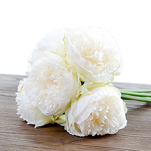 Bridal Wedding Party Festival Xmas 5 Head Artificial Peony Silk Flower Fake Beautiful Faux Flower Bunch Home Decoration Bouquet Milk White