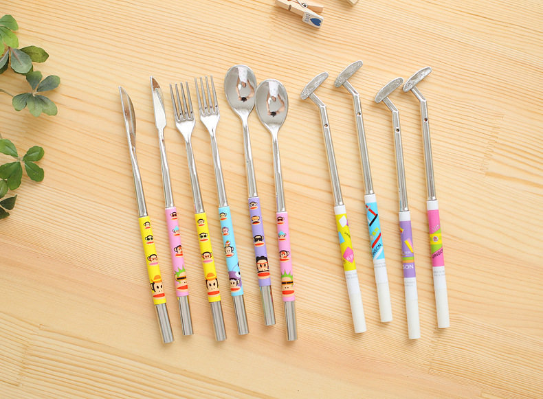 韩国 刀叉勺餐具造型中性笔 日韩小清新签字笔可爱创意水笔