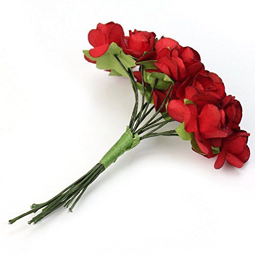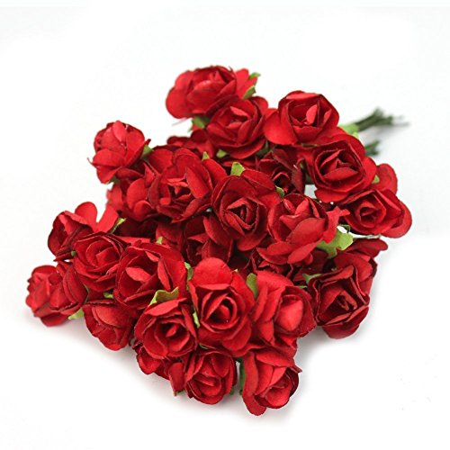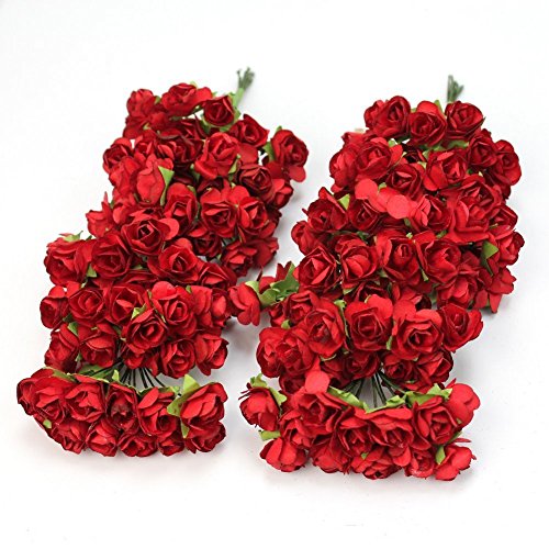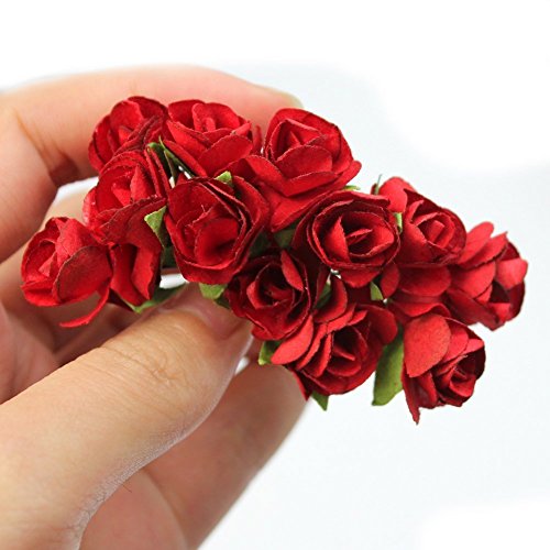 Sorive® 144pc Beautiful Artificial Paper Rose Flower Wedding Card Embellishment (Red)