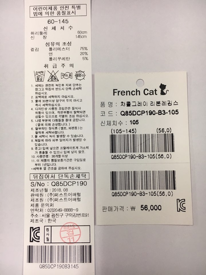제품소재 : 겉감: 폴리에스터75% 면20% 폴리우레탄5%