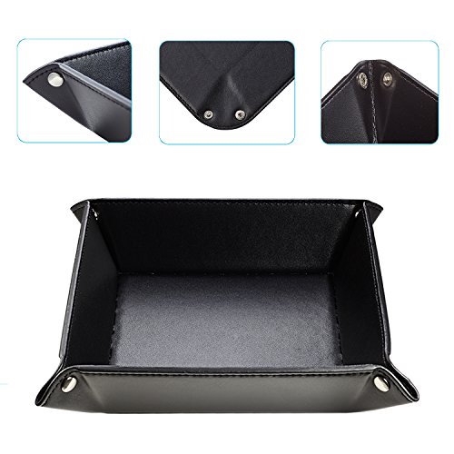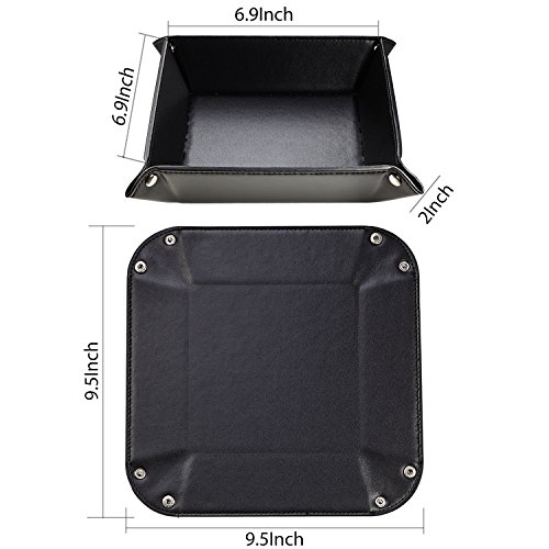 -. Feature : PU LEATHER VALET TRAY:made by Fully Super Leather to store your cell phone,watch,key,jewelry and change ect. / FOLDING FASHION DESIGN:with snaps in the 4 corners to make it is easy to fold and unfold and pack flat inside your case or bag. / DURABLE LEATHER JEWELRY TRAY:with delicate PU leather texture,easy to clean,only need wipe gently with wet cloth to restore the bright. / VALET TRAY WIDE USE:Convenience to Store things for home,office,Outdoor Party and nice appearance as a Furnishings. / STORAGE TRAY DIMENSIONS-Snapped size 6.9L * 6.9W * 2H Inch , Opened size 9.5"LX9.5"W.