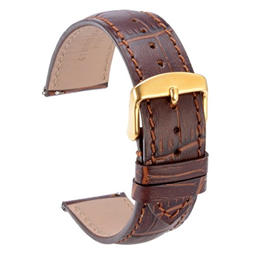 -. Title : WOCCI Quick Release Watch Bands,Replacement Alligator Leather Watch Strap with Gold Metal Pins Buckle