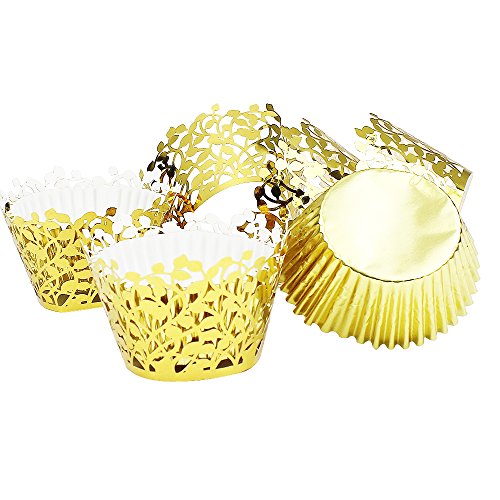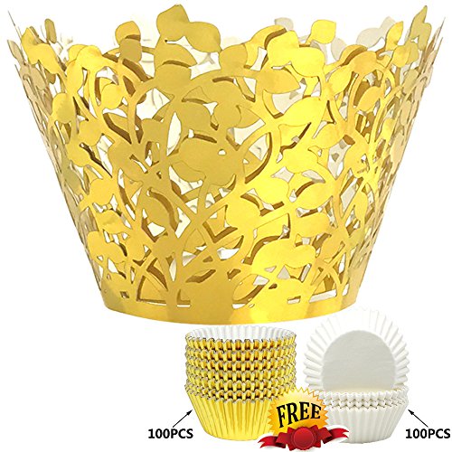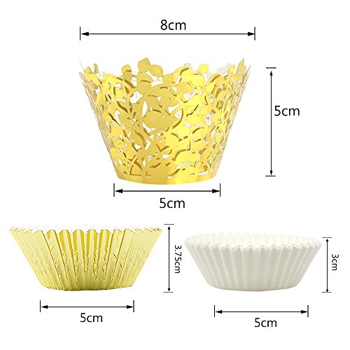 - Package includes: 100pcs cupcake wrappers, 100Pcs Gold Foil Baking Cups, 100Pcs White Paper Baking Cups; Color: gold.
