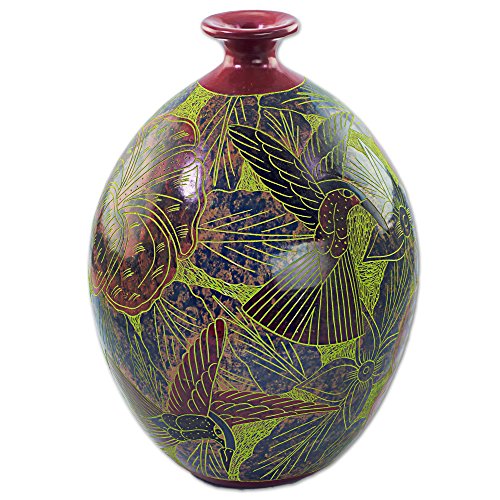 NOVICA Animal Themed Ceramic Vase, Multicolor, 'Nicaraguan Forest'