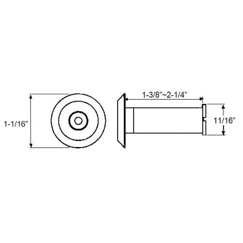 1-3/8" To 2-1/8" Satin Nickel Door Viewer. This Viewer Provide Security By Allowing A User To Identify Visitors Before Opening a Locked Door. Viewer Fully Adjustable To Fit Doors Thickness From 1-3/8" To 2" . Offers 200 Degrees Lens Angle For Wide Viewing. Easy to install with 9/16 inch Diamater Hole.Feature