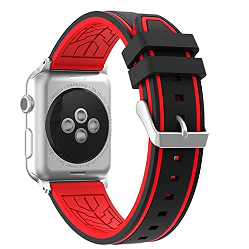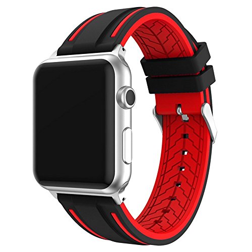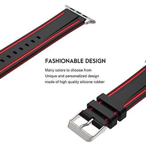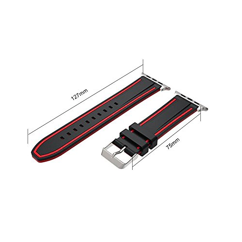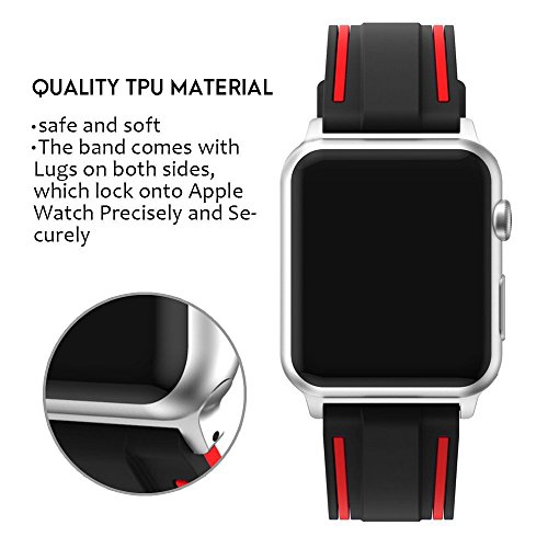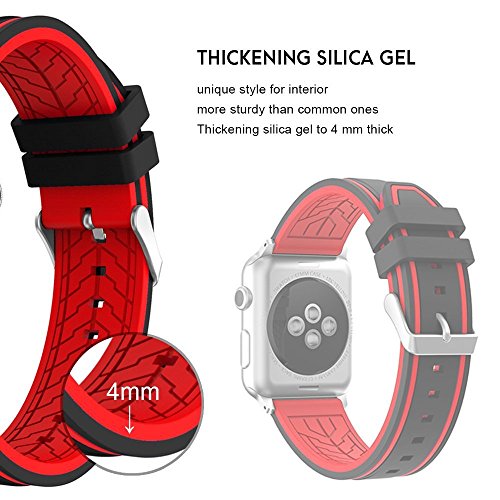 Apple Watch Band 42 Series 1 Series 2, Honest kin Soft Silicone Replacement Band Strap for Apple Watch 42mm 2015 Series 1 & 2016 Series 2 All Models(Not fit 38mm Versions) (Black/Red)