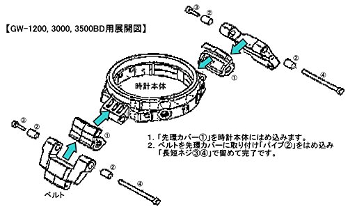 ■GW-3000B,GW-3500BB,GW-3500B,GW-2500,GW-2500BD의 우레탄 밴드 모델에 설치위의 접속 부품이 붙고 있습니다.