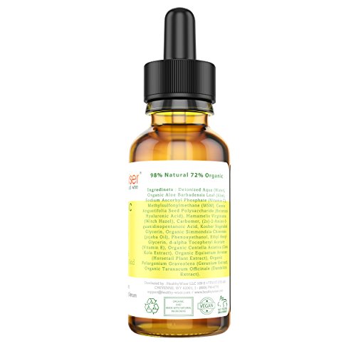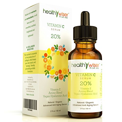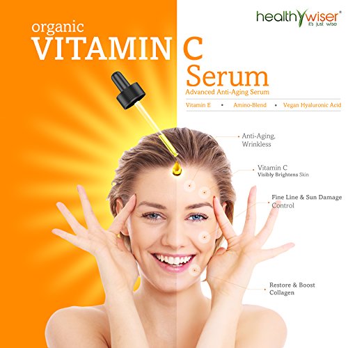 Want to keep them guessing about your age? It starts with a great complexion Nothing can make you feel older than a dull, uneven, and dehydrated complexion. Diet, stress, smog, and time can all leave your skin feeling dry, dull, and unhealthy. We all want to look our best and sometimes go to great lengths to improve our appearance such as plastic surgeries, chemical peels, and laser treatments. And while these treatments may be effective at least temporarily they do nothing to feed your skin or improve its health. But you can look as young as you feel without the pain of surgery Healthy Wiser Vitamin C Serum is a natural and organic solution to your skinÕs problems. Our serum will infuse your skin with nutrients, neutralize free radicals and banish those awful age spots and sun damage. After using our Vitamin C serum your skin will feel dewy, smooth, and soothed. Our nourishing formula boosts collagen production that greatly reduces fine lines and wrinkles. And you can expect to see visible results in as little as two weeks with daily use. Our Guarantee To You If you are not 100% satisfied with your Vitamin C Serum all you have to do is return it within 90 days and we will refund your entire purchase price. To get the luminous skin you want, scroll up and click on the Add to Cart button to get your HealthyWiser Vitamin C Serum shipped today.
