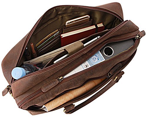 -. Feature : Highlights: genuine buffalo leather - Top quality - Classy, unisex vintage look / Features: thanks to the fine stitching and the excellent manufacturing, this genuine leather bag is a stylish and loyal companion for your everyday life. / Measurements (L x W x H): approximately 15,7 x 11,8 x 4,7 in / This shoulder bag is incredibly roomy. The many pockets and a large main compartment offer plenty of space to carry your belongings. / Ideal comfort: the shoulder strap is reinforced with a reliable nylon lining. Dadurch hängt die Tasche angenehm und sicher an der Schulter, gleichzeitig kann die Ledertasche durch den Reißverschluss einfach geöffnet und verschloßen werden.